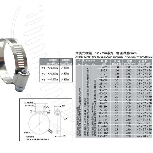 A(American) Type Hose Clamp-Bandwidth 12.7mm